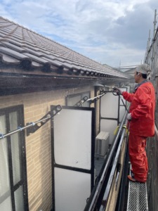 さて、Sアパートも高圧洗浄から始まります。外壁などの汚れ・コケをしっかり落とします。