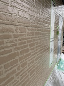 次に外壁塗装の高意匠サイディング塗装の2回目になります。こちらも中塗りと同じUVプロテクトクリヤーをもう一度塗ります。色ムラもなくなり厚みのあるしっかりとした仕上がりになりました。