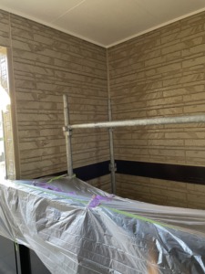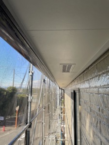 次に軒裏・パーテション塗装になります。シーラー下地のウレタン塗料2回塗りの計3回塗り仕上げなります。