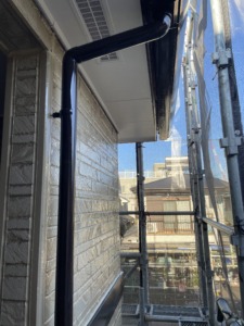 次に破風板・シャッターBOX・PSドア・雨樋塗装になります。破風板はシーラー下地のウレタン塗料2回塗りの計3回塗り仕上げで、他はウレタン塗料2回塗り仕上げなります。