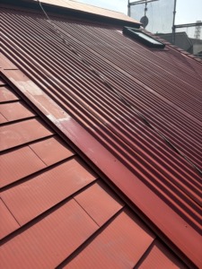 次に屋根塗装の下塗りになります。エポキシ樹脂錆止めを塗ります。