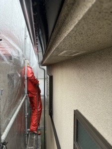次に雨樋・シャッターBox塗装になります。ウレタン塗料2回塗り仕上げになります。